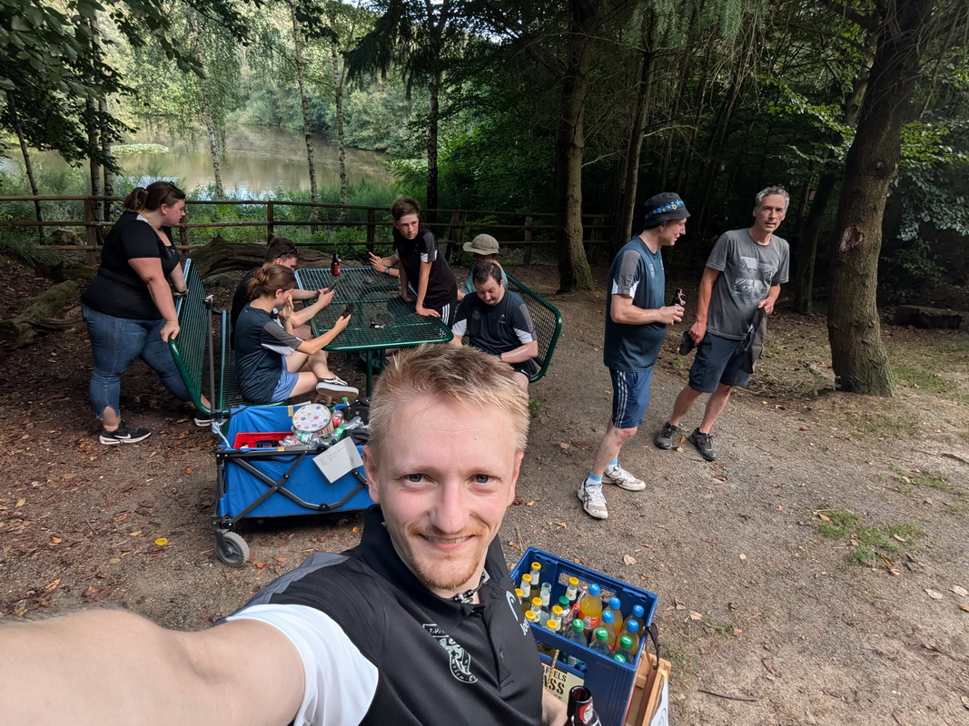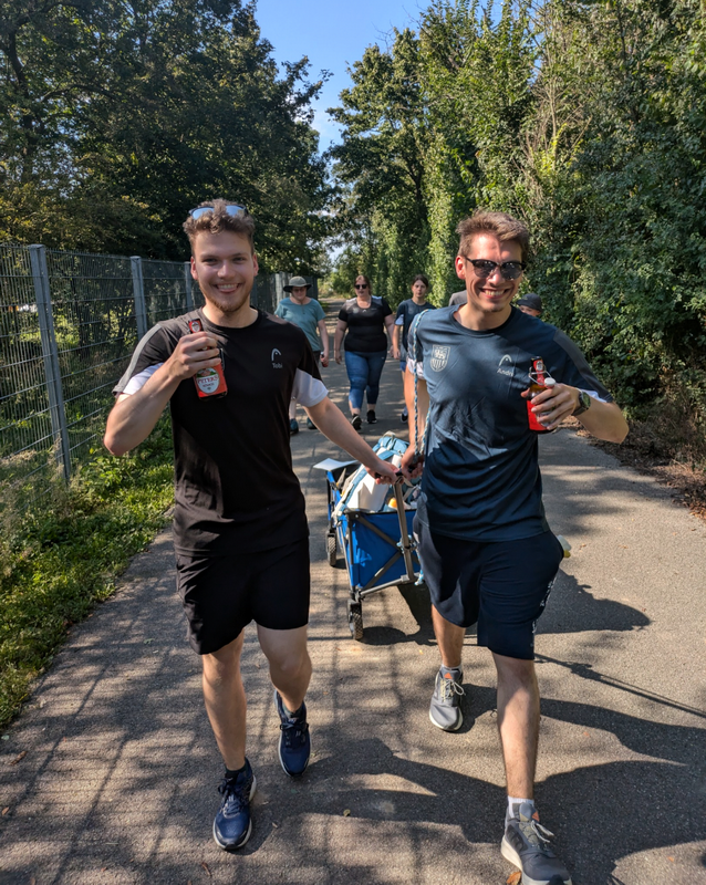 Deswegen waren wir gut ausgerüstet und sind mit 2 Bollerwagen, 3 Kästen Bier einem Kasten Fassbrause, 12 Litern Wasser sowie Verpflegung an den Start gegangen.