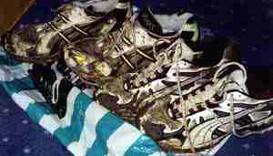 Die phantastische Aussicht der schönen Strecke konnten wir daher nur teilweise genießen, lediglich der Blick ins Lauterbrunnental und auf Wengen lenkte von den Strapazen ab. Nachdem es bei Kilometer 37 dann tatsächlich einige Sekunden lang Sonnenschein gab, wurde es dann auch allmählich kalt und auch der Regen setzte wieder ein. Insbesondere der steile Bergpfad auf den letzten Kilometern wurde zur Schlammschlacht und zur Rutschpartie, wer hier allzu glatte Sohlen hatte konnte schnell in Schwierigkeiten geraten. Ich glaube wir sind nur knapp der Schlechtwetterstrecke entkommen.