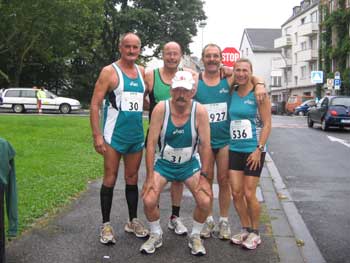 4 Läufer und 1 Läuferin vom TV Huchem Stammeln haben sich den Weg gemacht, um am diesjährigen DKV Brückenlauf über 15,8 km teilzunehmen.