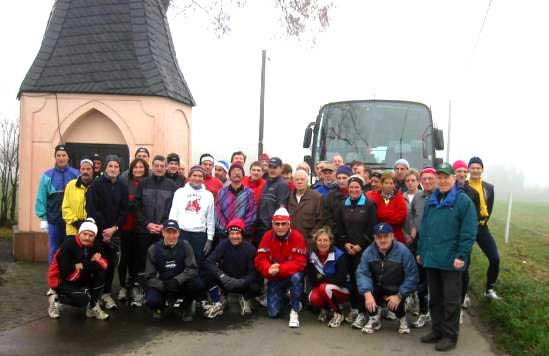 Die Läufer der langen Strecke entschlossen sich am Beginn des Kurses zu einem kleinen Umweg, der mit noch schlammigeren Wegen aufwartete. Das hielt die schnellere Gruppe nicht von einem forschen Tempo ab, sodaß man trotz der Extrameter und des schwierigen Geläufs wieder recht zügig das Ziel erreichte.