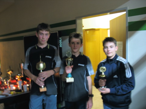 In der Jungenkonkurrenz waren leider nur zwei Spieler angetreten. Da die besten zwei Schüler mitspielen durften, kam es doch noch zu einem fairen Kräftemessen. Es setzte sich zu meiner Überraschung Stefen Loos durch und wurde Meister der Jungen. Markus Dohmen erreichte Platz zwei vor Marius Schmitz.